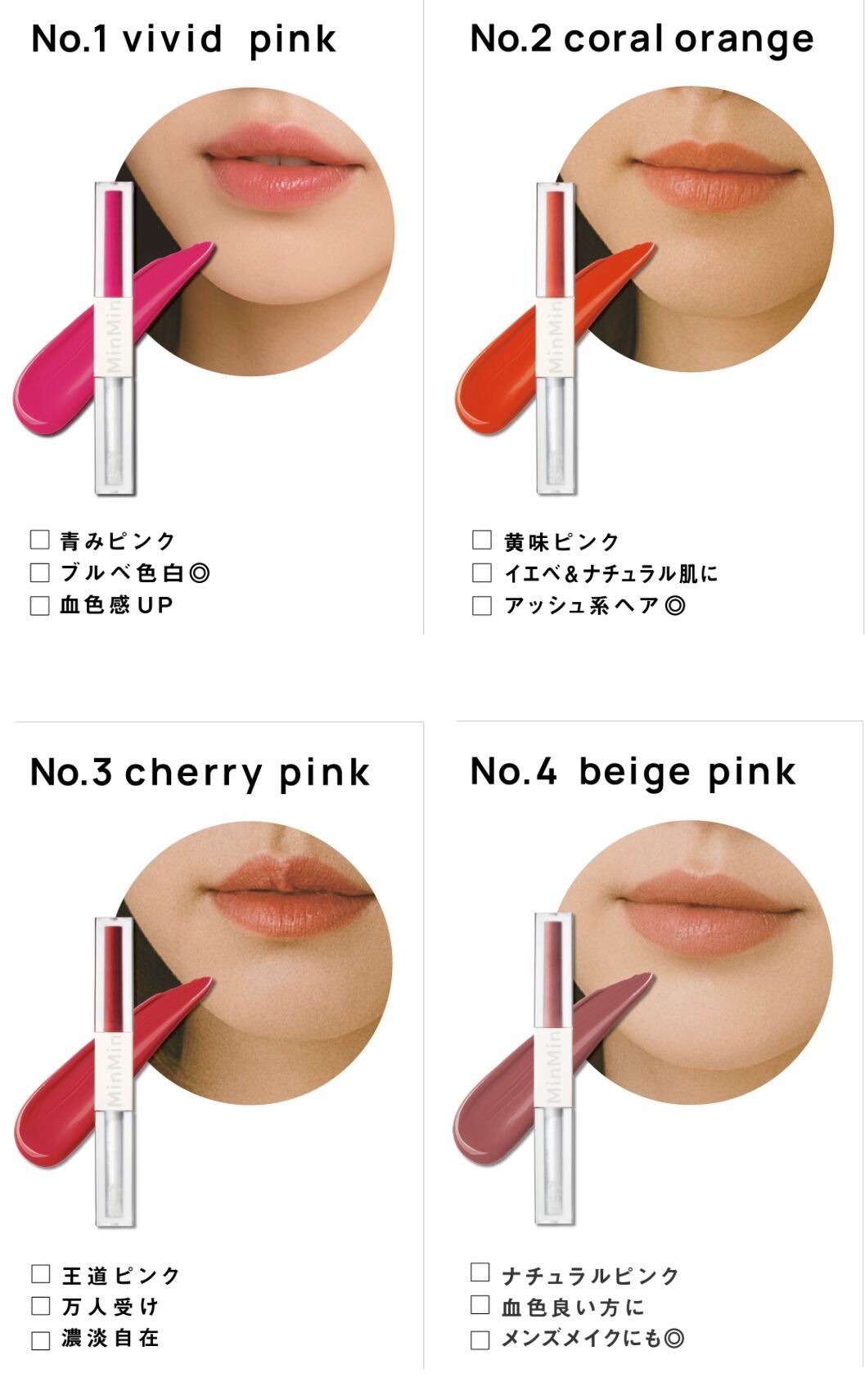 MinMinシリーズから待望の「落ちないリップ(保湿ジェル付き)」が登場。毎日のメイクはもちろん、1日に何回も塗るリップのストレスから解消されます。大事なイベントや、メイク直しの時間がない方に。